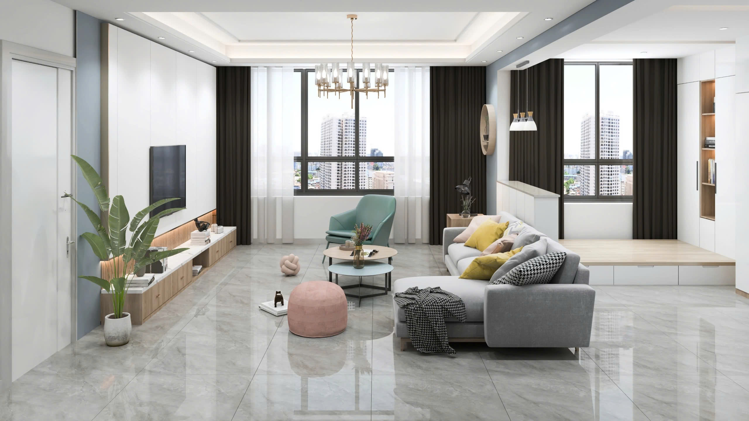 Gạch kích thước lớn mang lại sự sang trọng, liền mạch và mở rộng không gian, phù hợp với thiết kế hiện đại cho phòng khách và phòng ngủ.