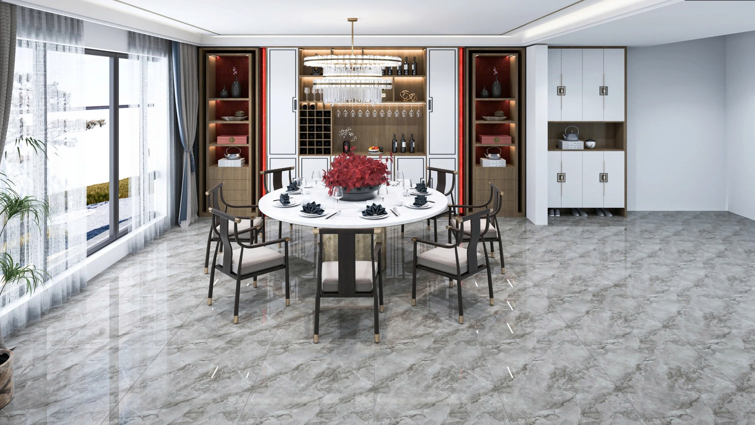 Gạch kích thước lớn mang lại sự sang trọng, liền mạch và mở rộng không gian, phù hợp với thiết kế hiện đại cho phòng khách và phòng ngủ.